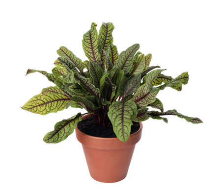 Leaves of sorrel Rumex acetosa and blood sorrel Rumex sanguineus , isolated in front of white background