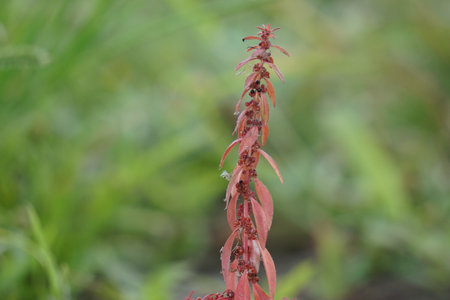 Amaranthus dubius, the red spinach, Chinese spinach, spleen amaranth leaves are spoiled by insets and flies