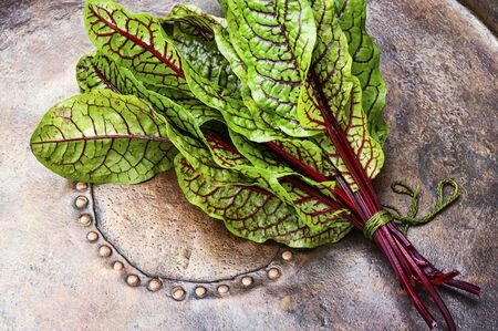 Bunch of raw sorrel on retro background.Sorrel bloody mary