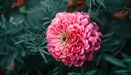 Zinnia flower in the garden. Close up. Selective focus.
