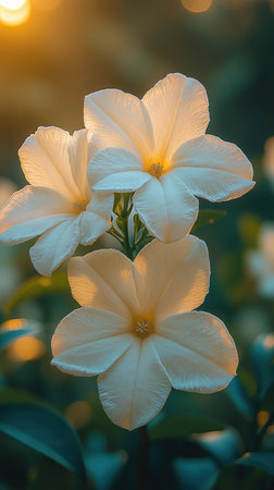 Soft white blossoms glow at sunset, creating a serene natural atmosphere.