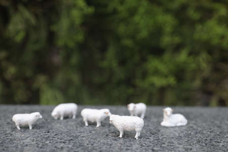 the group of mini figure sheep on nature