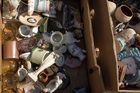 WARSAW, POLAND - April 08, 2018 Street flea market of old things and antiques in the old district