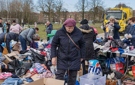 Brussels, Belgium - March 24, 2022: Refugees from Ukraine searching for clothes