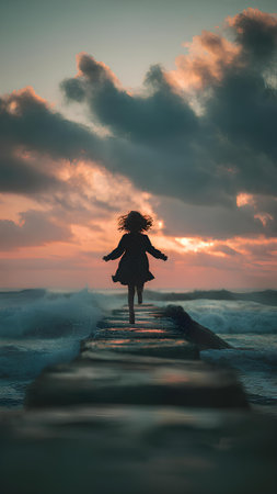 Blurry motion silhouette of a girl with long hair. ai generative.