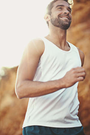 What a day for a run. Shot of a young man out for a run.