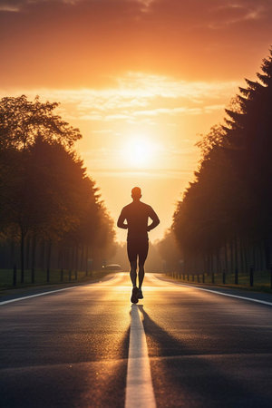 Running in nature as a sport and health choice for a man (AI generated image)
