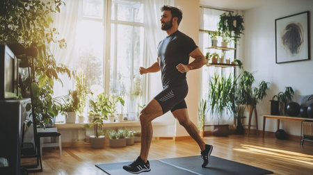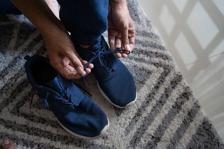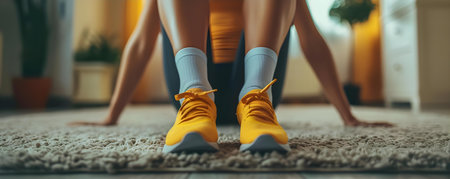guy man shoes sport shoes standing on a yellow rug for sports, training at home