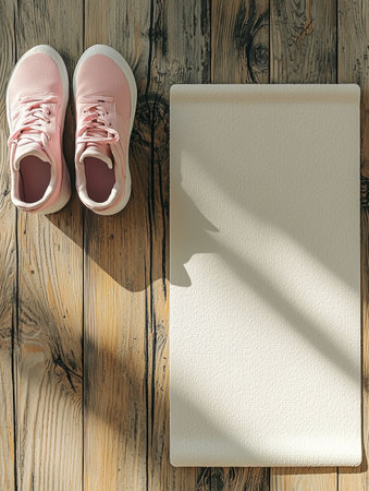 Yoga Mat on a Wooden Floor with Sneakers - ai