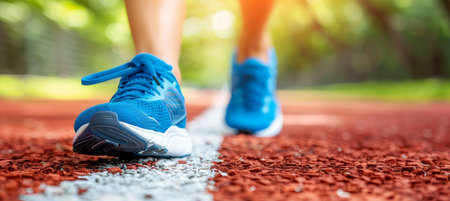 Runner athlete running on a race track. woman fitness jogging workout wellness concept