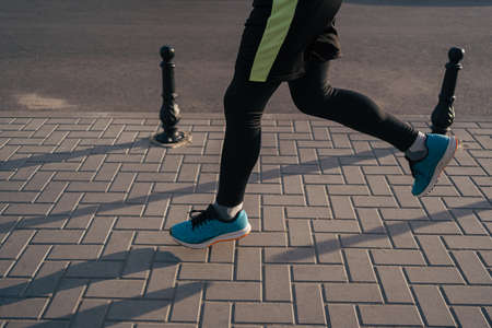 Man running legs in the city. Fitness, workout, sport, lifestyle concept.
