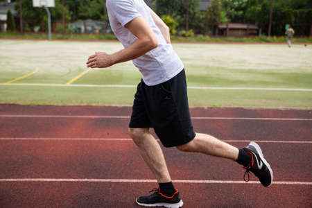 Asian men jogging and running in the park