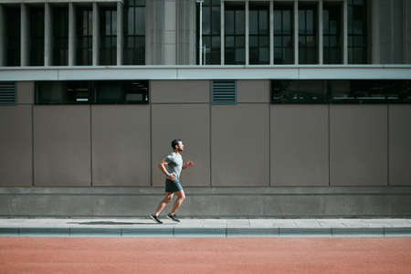 Chasing empty streets. Young man in sports clothing running while exercising outside