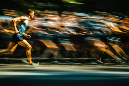 A dynamic image of a runner in motion, showcasing speed and determination in an outdoor urban setting.