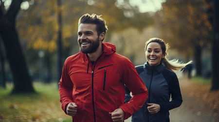 Autumn Morning Jog in Park. Generative AI