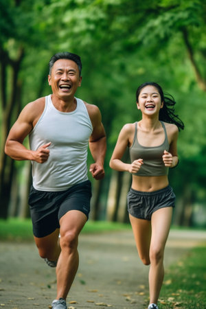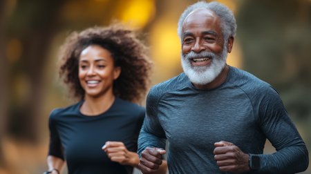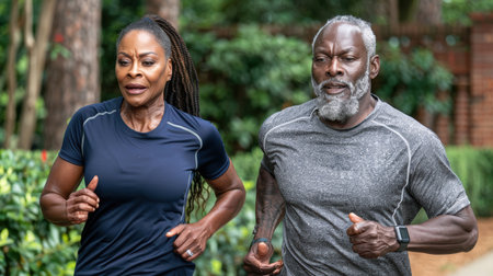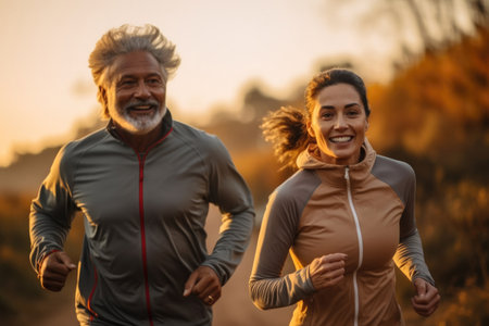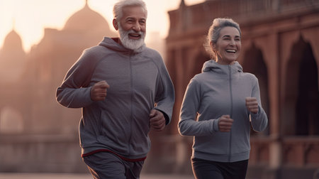 Couple of adults running on a morning, Human enhanced.
