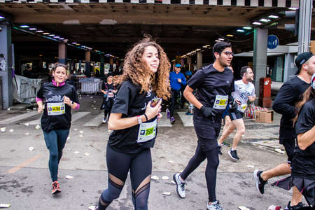 Rome, Italy - April 2nd, 2017: Athletes of the 23rd Rome Marathon to the passage of the tunnel Umberto I, a few kilometers from the finish.
