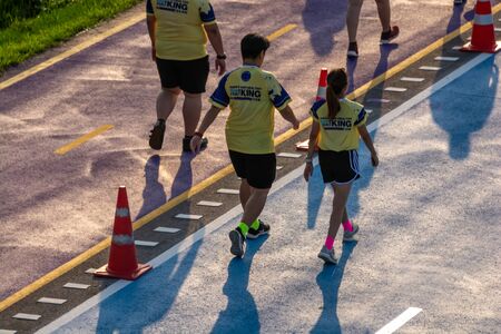Bangkok, Thailand - May 25, 2019: Unidentified runners running in Happy And Healthy Run For The King at bicycle lane of Suvarnabhumi international airport,Bangkok,Thailand.