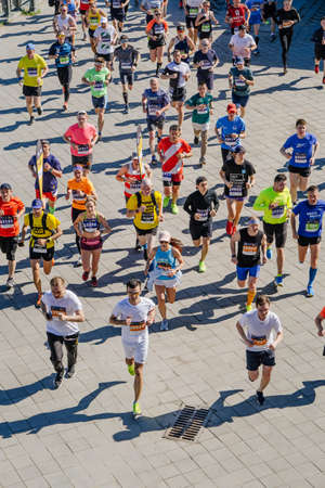 Tel Aviv Israel February 28, 2020 View of unidentified people running the marathon in the streets of Tel Aviv in the morning