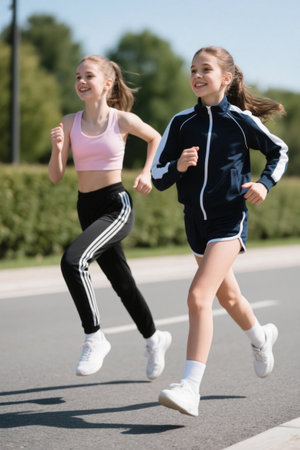Two girls running in the sun