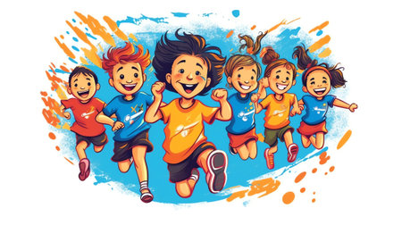 Group of children with joy and energy running.