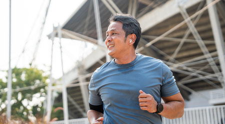 Asian men jogging and running in the park