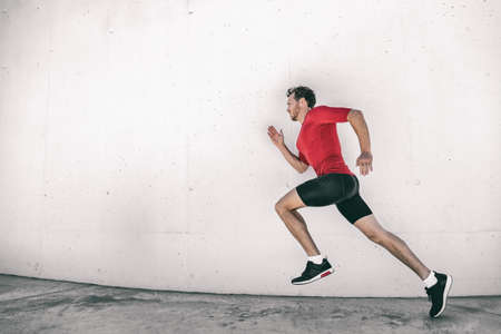 Man sportsman running for exercise in active wear. Sportsman jogger running. Morning sport workout runner running. Sport runner in Manhattan. Sportsman in New York. Copy space banner