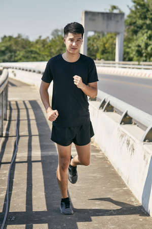young asian man male runner jogger running jogging outdoors