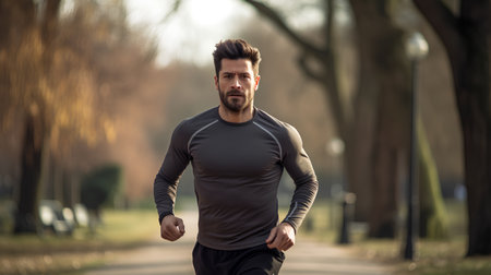 Handsome man jogging outdoors : Generative AI