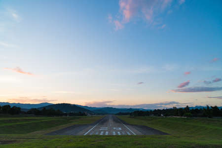 Airport runway sunset. Background mountain and sunset in Thailand.