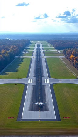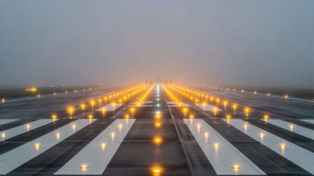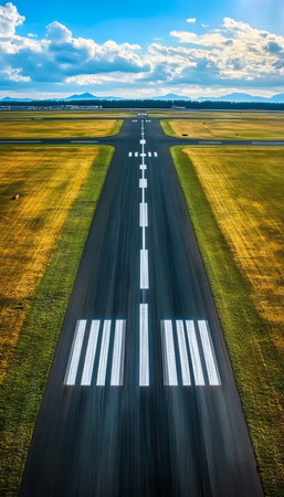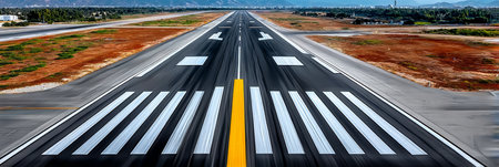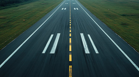 Airport Runway Extending into the Horizon with Guidance Markings for Safe Aircraft Landing