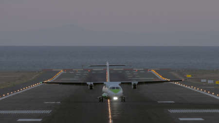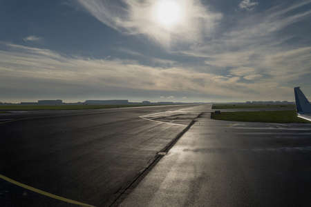 airport runway in the evening sunset light, ready for airplane landing or taking off