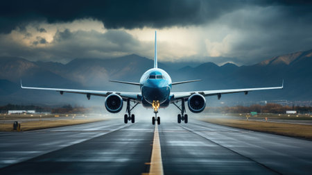 A plane takes off from a runway soaring into the sky and heading towards its destination created with Generative AI