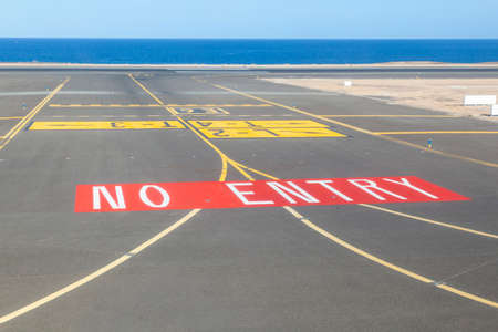 Landing light. Directional sign markings on the tarmac of runway at a commercial airport