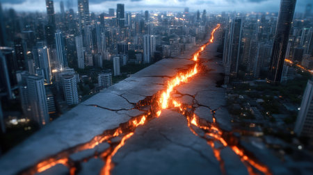 Lava Rivers Lighting the Cracked Ground in a Distant City