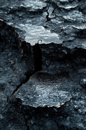 A striking image showcasing a cracked surface, revealing a deep crevice with a dark interior. The lighting adds depth and intrigue to the scene.
