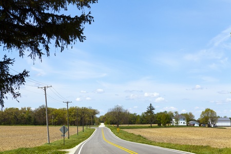 Rural areas from a height showing farms, country roads and fields.