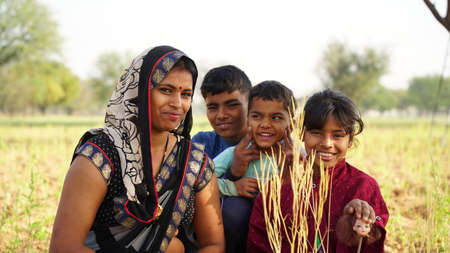 Indian family shot in agriculture farmland. Little kids enjoying with each other and giving a memorable pose.