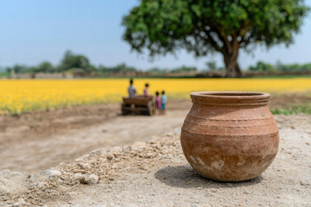 rural landscape with traditional clay pot
