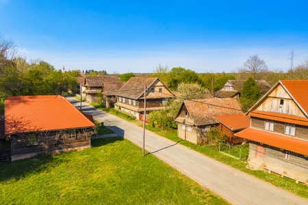 Old houses in traditional village of Krapje, Lonjsko polje, Croatia