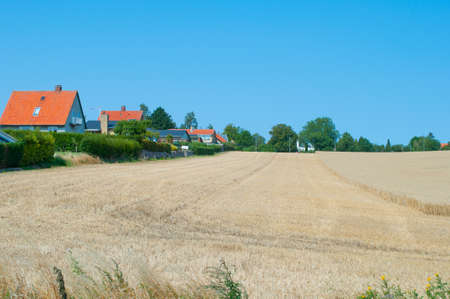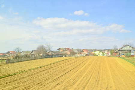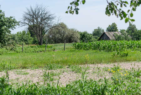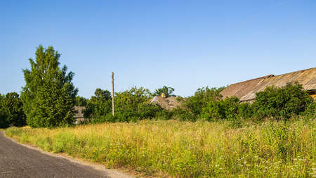Beautiful summer landscape countryside at sunset. Path to the village. Great holiday home in the countryside. Evening