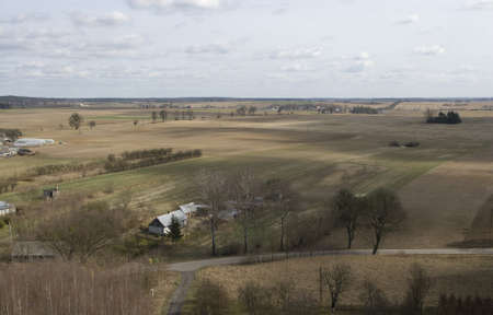 Landscape of field and hills of Wiezyca, Kashubian region in Poland. Agriculture and exploration concept.