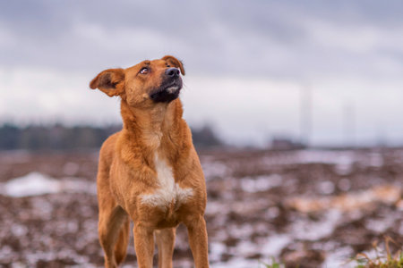 Portrait of a beautiful mixed breed dog in the park. Selective focus.