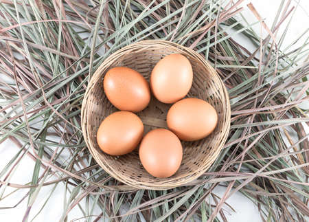 Fresh eggs in a bamboo basket