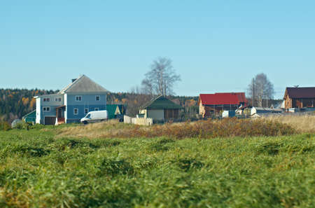 Autumn rural landscape. North Russian village. Arkhangelsk region, Russia
