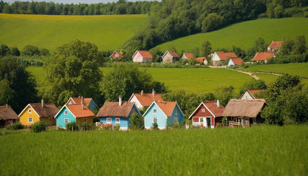 vibrant colors of houses and the lush green of the landscape generative ai