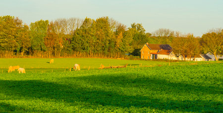 belgian countryside with farm and cows between brussels and charleroi in the fall