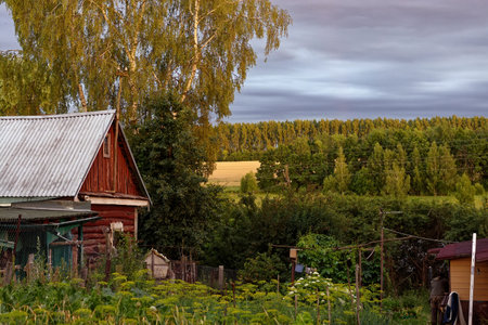 Rural house at sunset in summer, Russia