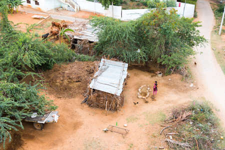 PUTTAPARTHI, ANDHRA PRADESH - INDIA - JULY 22, 2017: View of the country yard. Top view