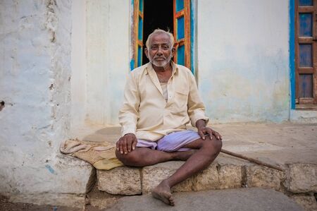 KAMALAPURAM, INDIA - 02 FABRUARY 2015: Indian elderly man sitting infront of his home